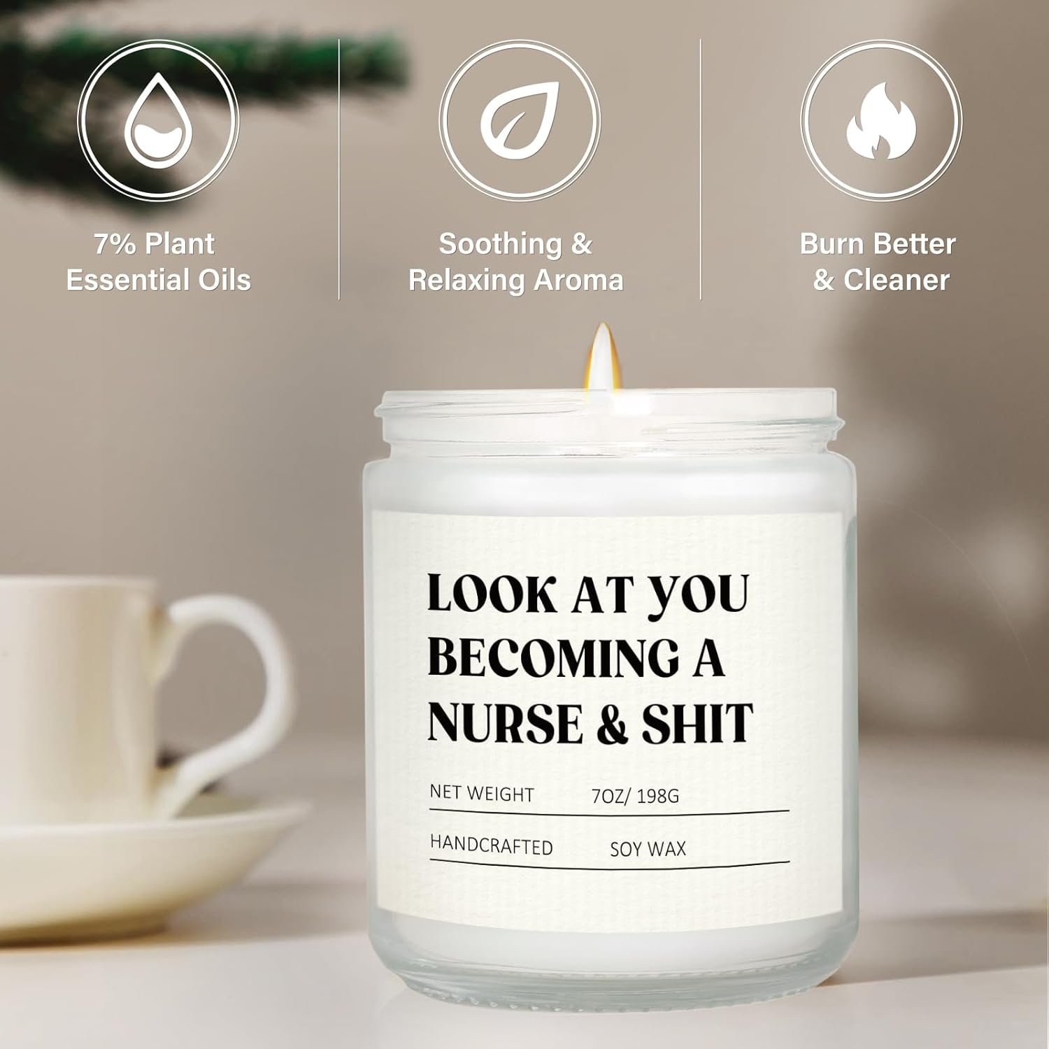 - 【Funny Gifts for Nurses/Future Nurse】- Present this funny nurse candle to your special someone and get a good laugh! Whether it's for a nursing school student/grad, future nurse, new nurse, RN, LPN, APRN, or CNA. This cute candle makes a thoughtful gift for your daughter, friend, niece, classmate, sister, student, or anyone about to start the journey of a nursing career. It humorously expresses your congratulations and will make the recipient feel cherished.