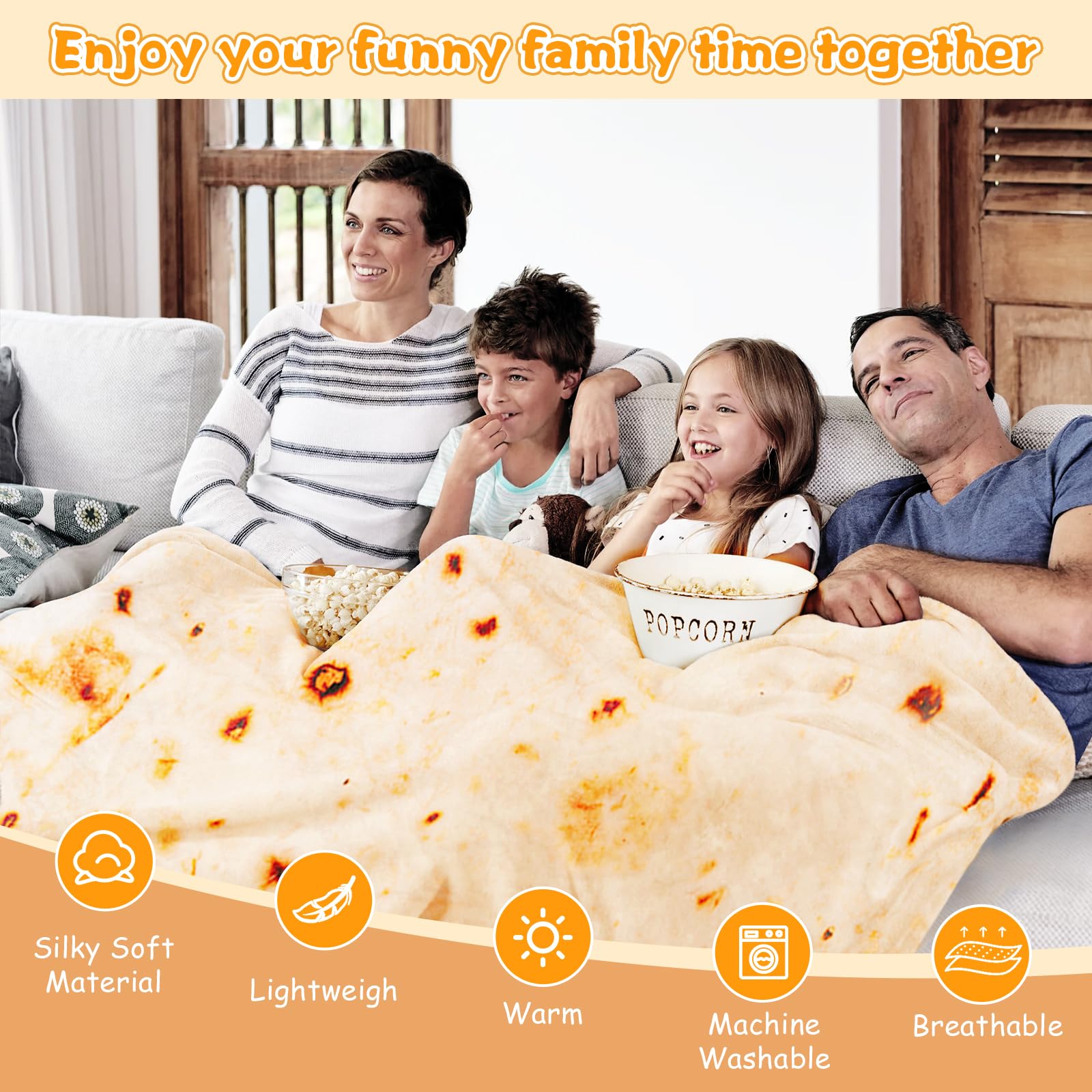 - Fun Design Meets Everyday Comfort-Transform your couch time into a playful escape this holiday season! The 80-inch Tortilla Blanket is not just a blanket; it’s a hilarious way to stay cozy. Perfectly sized for adults and kids, it’s ideal for naps, movie marathons, or simply turning yourself into a giant human burrito. Available in multiple sizes (36", 49", 60", 71", 80"), there’s a blanket for everyone—whether you’re curling up solo or sharing the fun with family! Perfect for Christmas and White Elephant gift exchanges, this blanket will bring laughter and warmth to your loved ones.