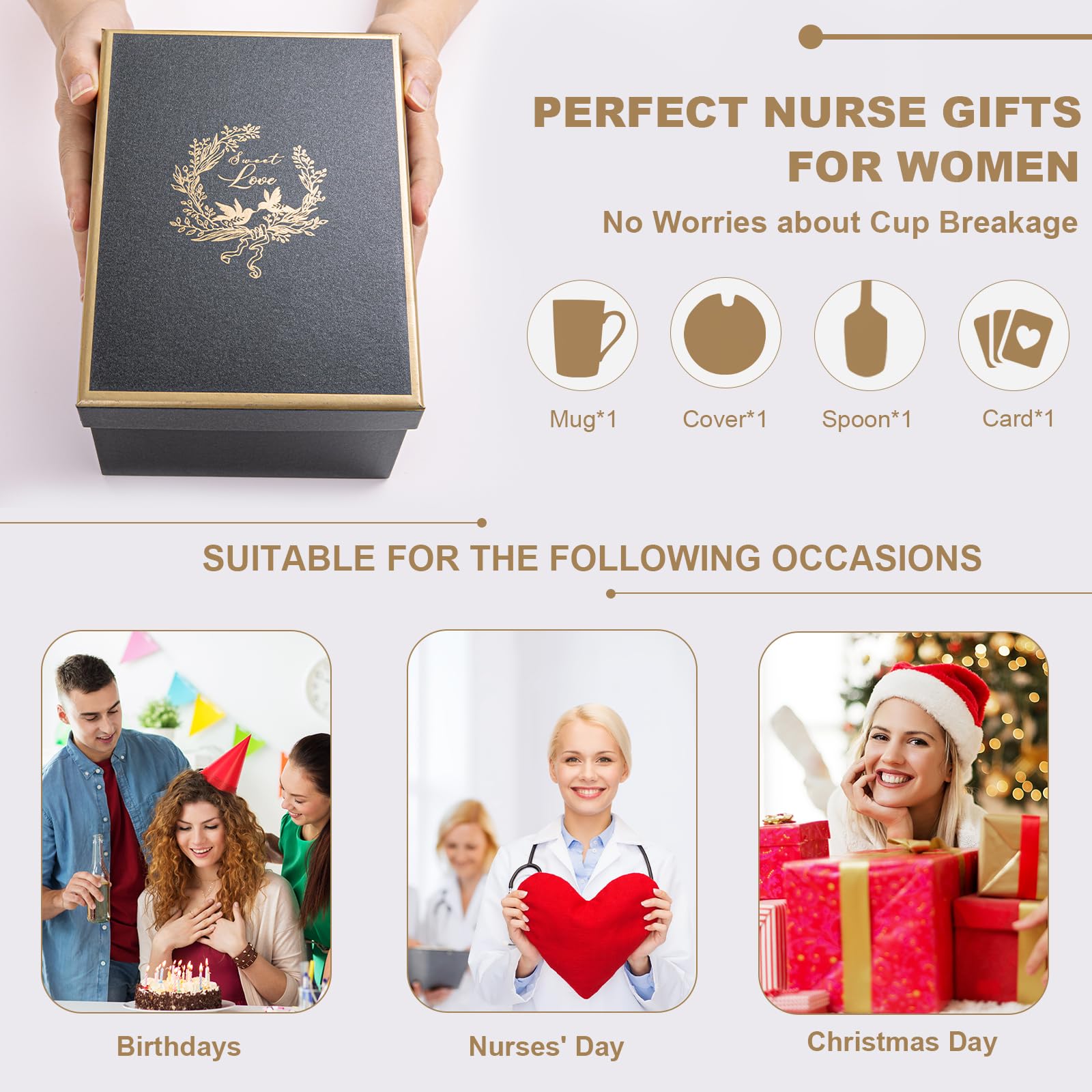 - High Quality & Convenience: 14oz ceramic mugs are hand-painted by professional designers and crafted by professional craftsmen. Made of durable, safe and harmless gold material, fired in a high-temperature kiln, not easy to scratch, and gives the gold a bright luster that sparkles under the light. Microwave and dishwasher safe. This nurse gift mug is made from our special gift box satin that's guaranteed not to break