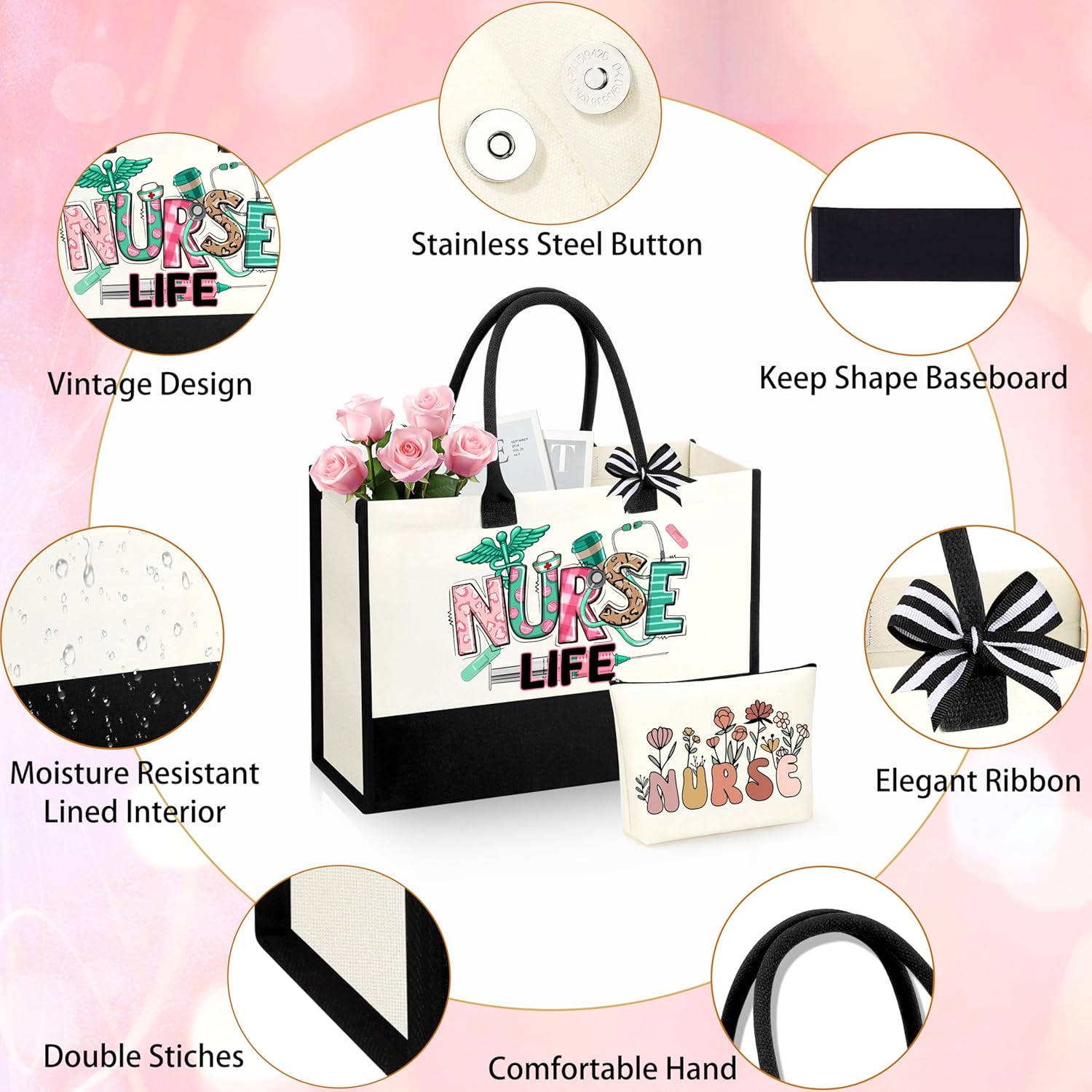 - NURSE BEACH BAG FOR WOMEN – chic & durable nurse bag. Not just pretty, This high-quality canvas tote features comfortable handles and elegant ribbon,Beautiful and practical. Spacious enough for daily essentials, stylish enough for work or weekends, and strong enough to carry her world. The vintage embroidery adds a timeless touch she’ll love showing off.