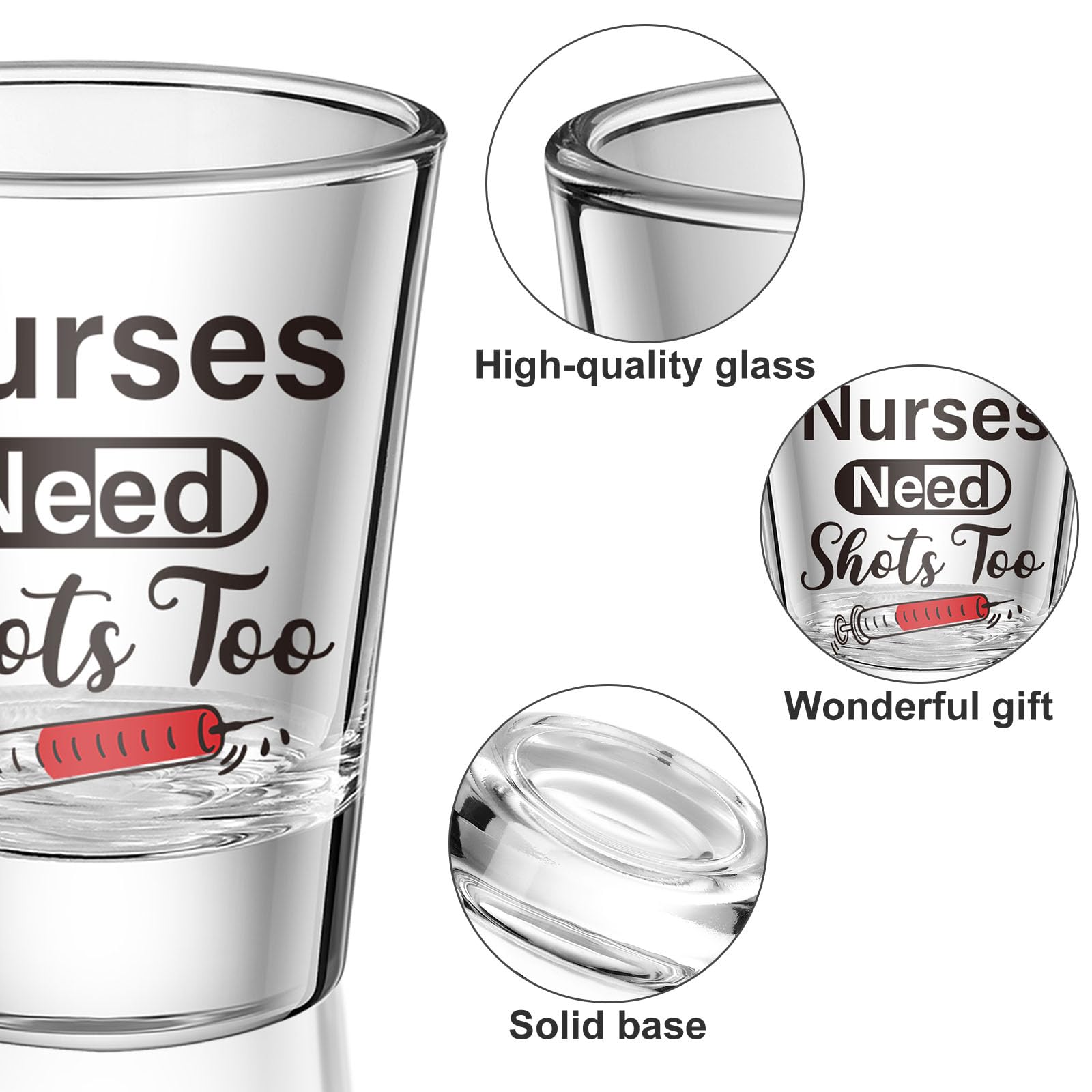 Patelai Nurse Need Shots Too, Funny Glass Gift for Women and Male Mom Sister or Friend Present for Nursing Graduation Nurses Day Party 2 oz(2 Pieces,2.36 x 1.97 Inches)