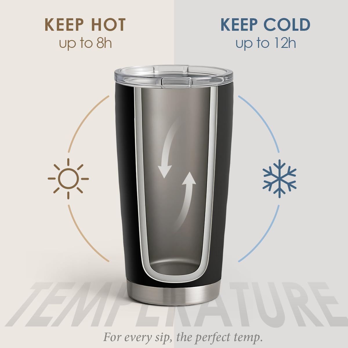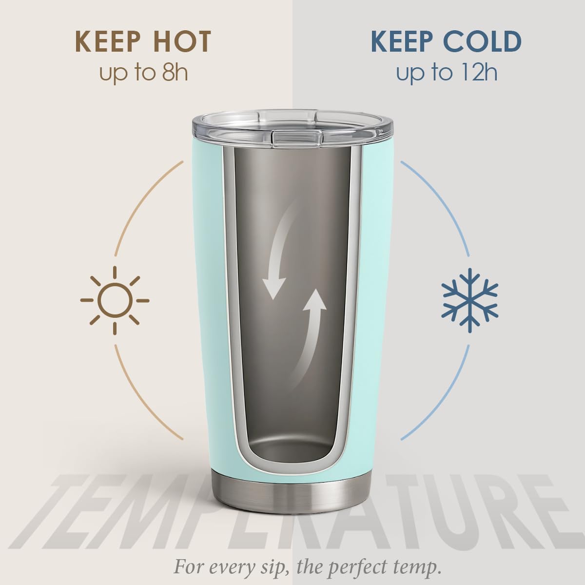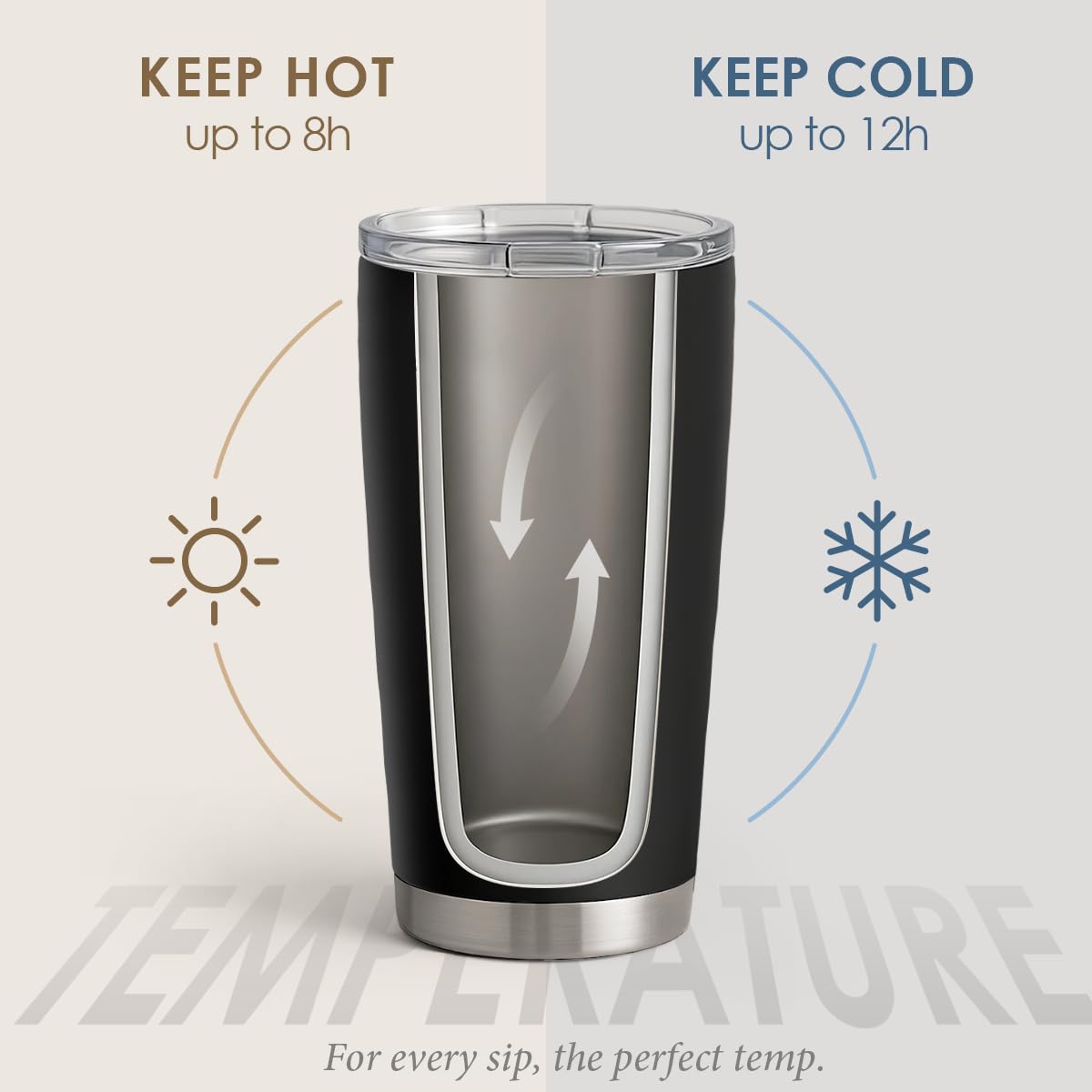 - Temperature Retention: The 304 stainless steel double-walled, vacuum-insulated construction of each tumbler helps your beverage stay at the proper temperature for 6 to 12 hours. Your coffee, tea, wine, beer, or chocolate would stay hot or spill-free for hours in this container.